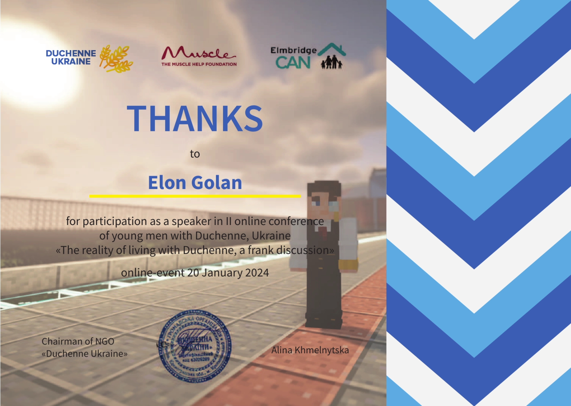 בגיל 6 אובחנתי עם ניוון שרירים על שם דושן, מחלה (לא אוהב את המילה) כרונית פרוגרסיבית הפוגעת בתפקוד השרירים בכל הגוף. כיום מתנייד בכסא גלגלים ממונע, מונשם וזקוק לעזרה בפעולות היום יום מסביב לשעון.
