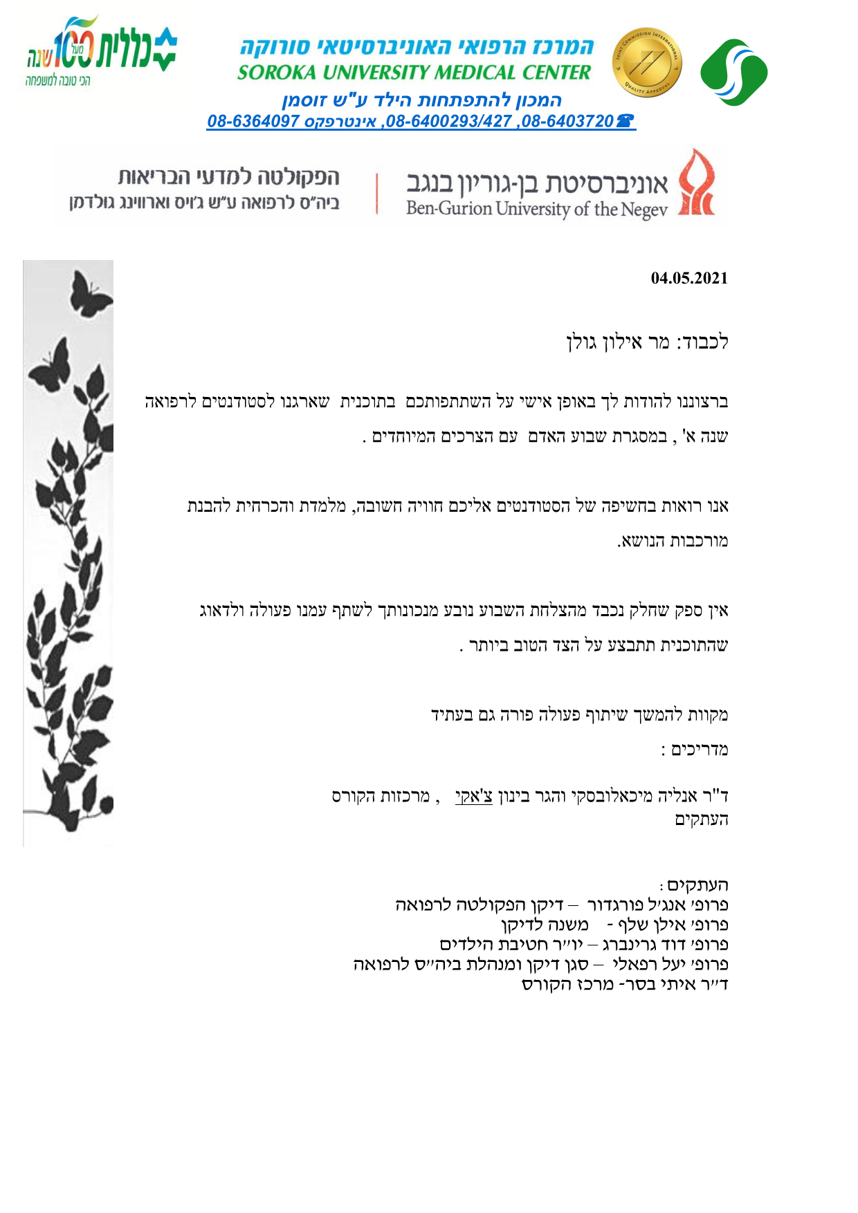 האימפקט הכי גדול ברמה אישית לדעתי היה מול הסטודנטים לרפואה וסיעוד, בעיקר בגלל התגובות והשיח שנוצר אחרי.